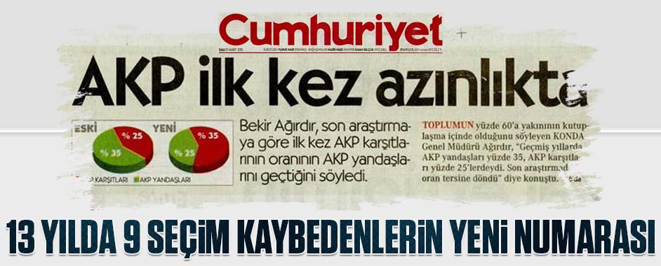 KONDA Genel Müdürü Bekir Ağırdır, araştırmalarında ilk kez AK Parti karşıtlarının oranının, AK Parti yandaşlarını geçtiğini iddia etti.
