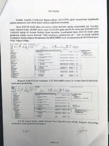 Raporda, holding bünyesinde faaliyet gösteren Işık Yayıncılık Genel Müdürü Özden Demir’in bilgisayarında, çarpıcı belgelere ulaşıldı. Dönemin FETÖ’ye bağlı İstanbul Mali Suçlarla Mücadele Şube Müdürlüğü ekipleri tarafından hazırlanan 17 Aralık dosyasına ilişkin fezleke, Demir’in bilgisayarında bulundu. Fezlekenin holding bilgisalarına, 17 Aralık sabahı saat 06.57’de yüklendiği saptandı.