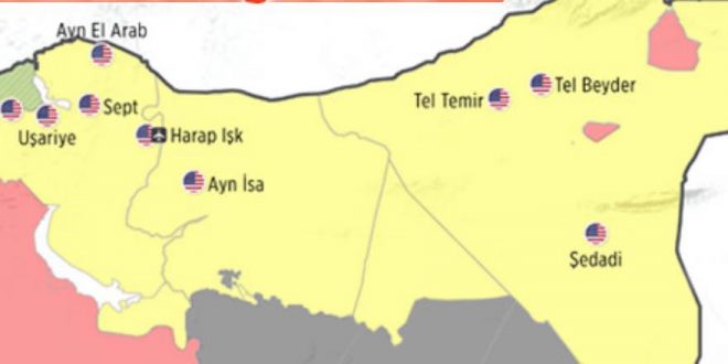 Anadolu Ajansı, Salı günü ABD’nin Suriye’nin kuzeyinde asker konuşlandırdığı 10 noktanın adlarını ve bazılarında bulunan ABD ve Fransız askerlerinin sayısını yayımlamıştı.