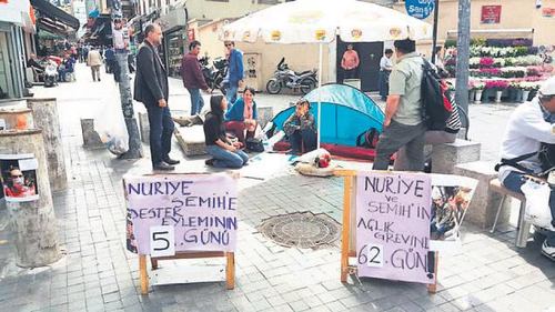 Bu arada 11 Mayıs Perşembe günü açlık grevi yapan Nuriye Gülmen ve Semih Özakça’yı muayene etmek isteyen sağlık görevlileri bir sürprizle karşılaştı. Doktor ve psikologlardan oluşan sağlık ekibi Kızılay’daki Yüksel Caddesi’ne giderek grevdeki iki isme ulaşmaya çalıştı. Ancak açlık grevine destek olmaya gelen kişiler grev yapan iki ismin evde istirahatte olduğunu söyledi. Gülmez ve Özakça ile görüşmek isteyen sağlık ekibi hayır cevabını alınca, eylemcilerin evde istirahat ettiği ve tıbbi yardımı geri çevirdiğine yönelik tutanak tuttu.