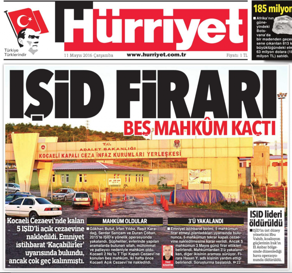 Adalet Bakanı Bekir Bozdağ, cezaevlerine dönük haberlerin büyük kısmının çarpıtma ve yönlendirme haberler olduğunu belirterek, “Bugün Türkiye’de büyük bir gazetenin manşetinde, IŞİD firarı, 5 tane mahkum firar etti diyor, bu haber açık şekilde Türkiye Cumhuriyeti devletinin DEAŞ terörüne yardım ettiği algısını oluşturmak adına çarpıtma bir haberdir” dedi.