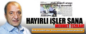 Tezkan bizi kırmamış, daha doğrusu yanıltmamış… Bugün eşi Ruhsan Tezkan’ın patronu konumundaki Bakırköy Belediye Başkanı Ateş Ünal Erzen’i öven, “Hanut” bir yazı yazmış… “Merdi Kıpti şecaat arzederken sirkatin söyler” misali iki hafta önce Milliyet’e verdiği röportajda belediye başkanlarının imar rantı paylaşımındaki rolünü ağzından kaçıran Erzen’i aklamaya çalışmış…