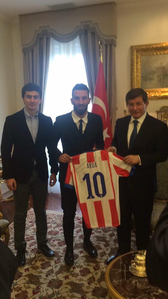 Başbakanlık Konutu’ndaki görüşmede Arda Turan, Başbakan Davutoğlu’na Atletico Madrid forması hediye etti. Çok yakın iki arkadaş olan Arda Turan ile Acun Ilıcalı sık sık İspanya’da ve Türkiye’de bir araya geliyor.