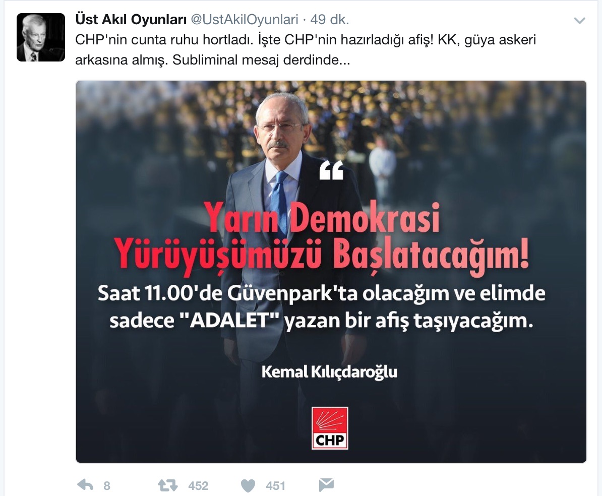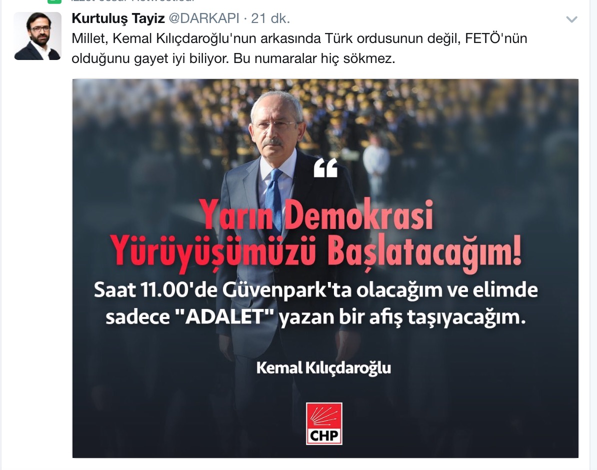 FETÖ’nün siyasi ayağı gibi çalışan CHP, “arkamızda FETÖ var” mesajıyla resmen yeni bir darbe tehdidinde bulundu.
