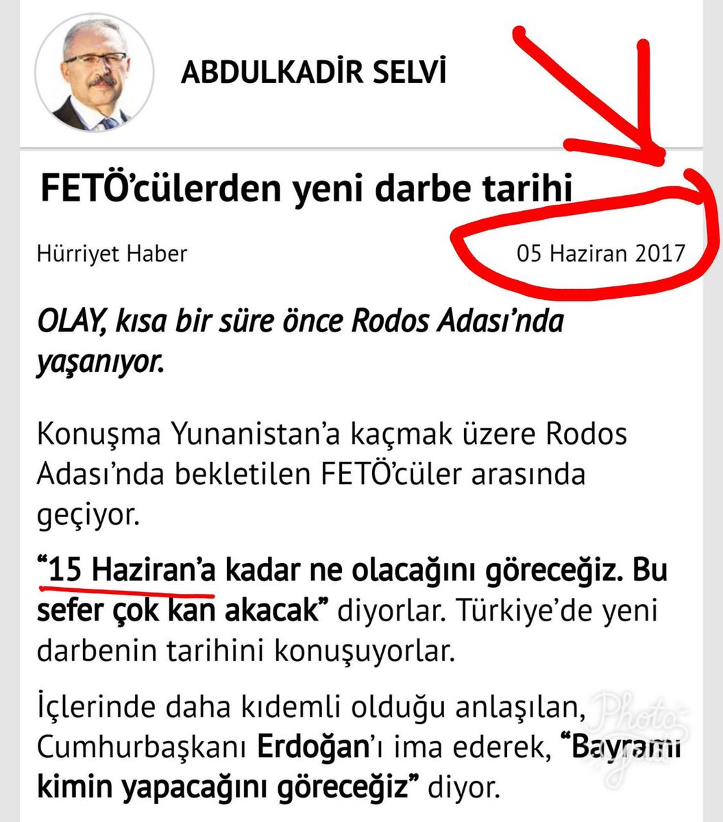 Önce 5 Haziran 2017 günü Hürriyet gazetesinde Abdülkadir Selvi yazdı; “FETÖ 15 Haziran’da darbe yapacak” diye. Durduk yere yeni bir darbe söylentisinin çıkması tuhaftı. Hele hele Doğan medyası gibi kirli bir adresten hesapta uyarı gibi gelen bu iddiayla ince bir oyun planlanıyor gibiydi.