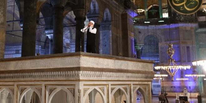 Program TRT Diyanet’ten canlı yayınlanırken, Ayasofya’dan okunan sabah ezanı da Diyanet’in Twitter hesabından paylaşıldı.