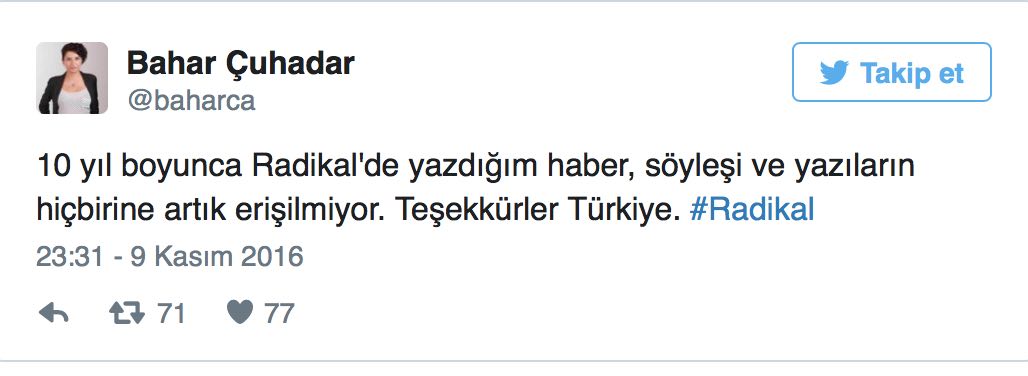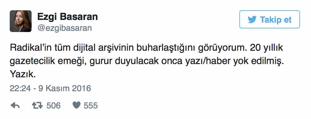 Daha önce Radikal’de çalışan birçok gazeteci de arşivin silinmesine Twitter’da tepki gösterdi.