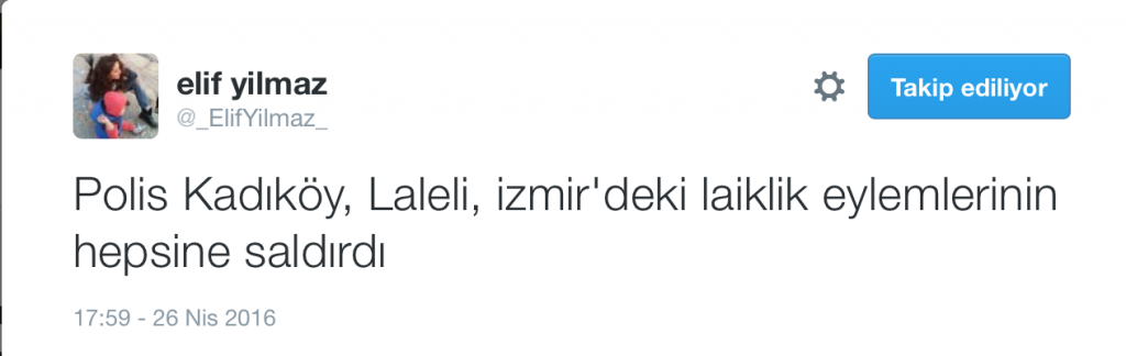 Her fırsatta bir provokasyon malzemesi bulup sokakları terörize etmek isteyenlerin yeni malzemesi “laiklik” konusu oldu. Bu kez laiklik provokasyonu için sokaklara çıktılar. Provokasyonun bir de medya ayağında yer alanlar vardı. Onlar da tıpkı Gezi kalkışması döneminde olduğu gibi sosyal medya hesaplarından polisi “saldırgan” gösterip, sokak terörünü desteklediler. O isimlerden biri de Aydın Doğan’ın sahibi olduğu Posta gazetesi yayın koordinatörü ve yazarı Elif Yılmaz. Posta’da köşe sahibi olan Yılmaz, Kadıköy’de polisin yaptığı müdahaleyi “polis saldırdı” diyerek sosyal medya hesabından paylaştı. Merak edilense Aydın Doğan’ın bu militanlara ne borcu var ki, böylesine besliyor.