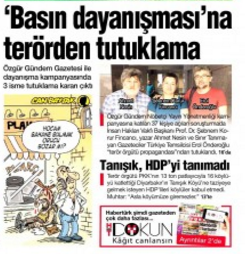 Terör örgütü PKK’nın paçavrası Özgür Gündem’e sahip çıkarak nöbetçi genel yayın yönetmenliğini yapan 3 sözde gazeteci terörden tutuklandı. Başta Aydın Doğan medyası olmak üzere ihanet şebekesi yine PKK’nın tarafını tutarak tutuklanan isimlere sahip çıktı.