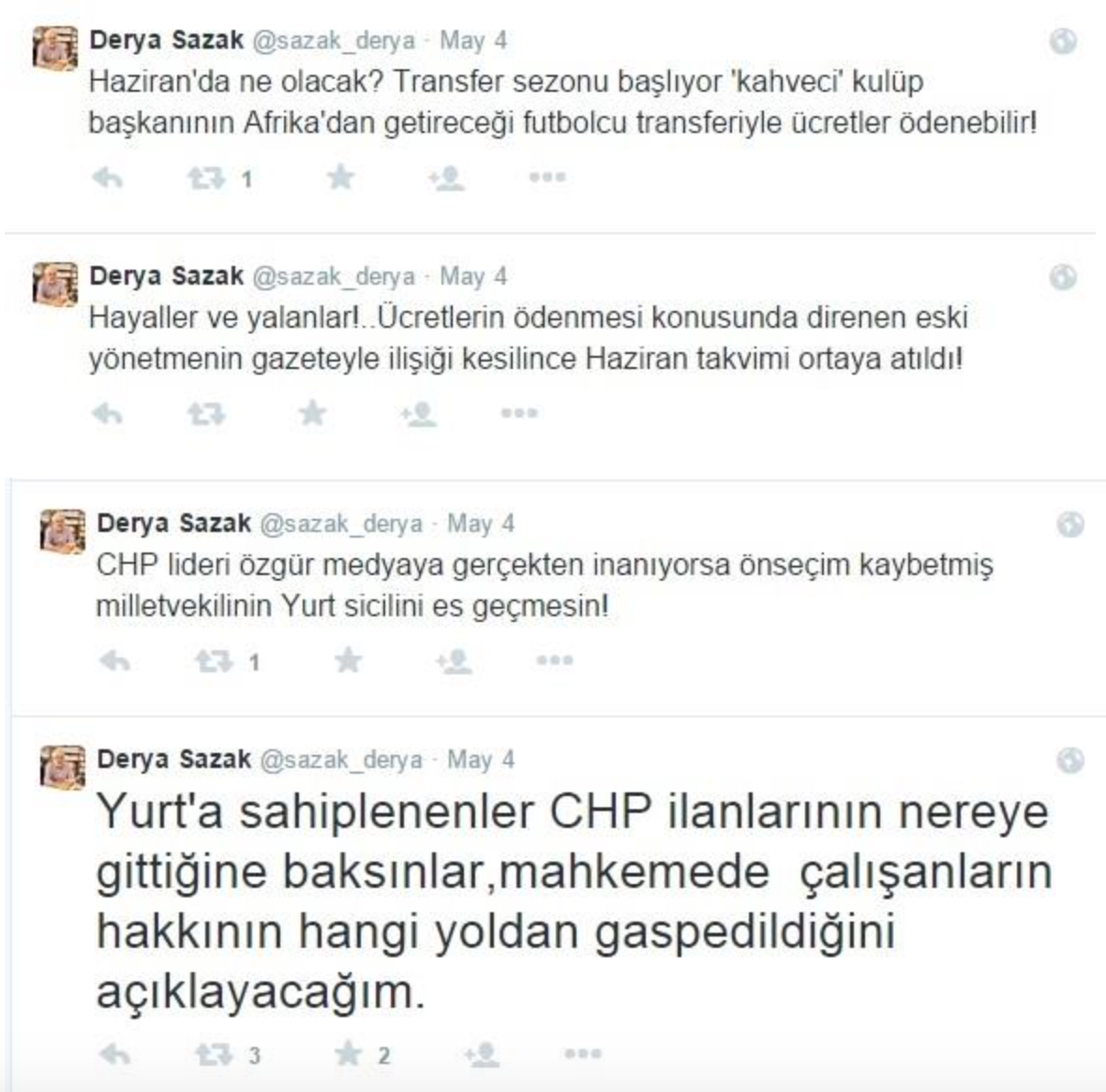 Sazak, açıklamalarına devam etti. Gazeteye gelir olması için şantajla para toplanıldığını söyleyen Sazak, “Mahkemede açıklayacağım” dedi. Sazak, Merdan Yanardağ’a yönelik de eleştiride bulunduğu Twitter hesabından şunları anlattı: