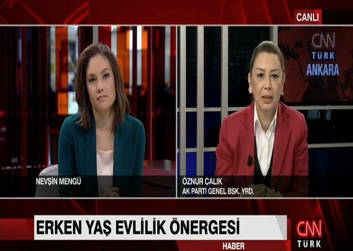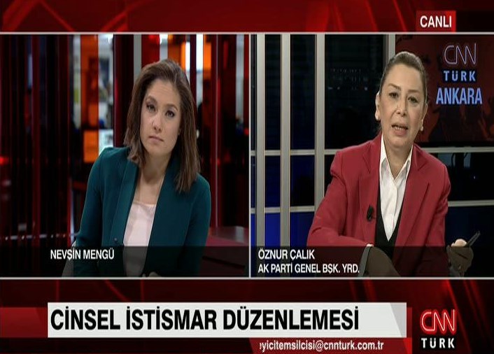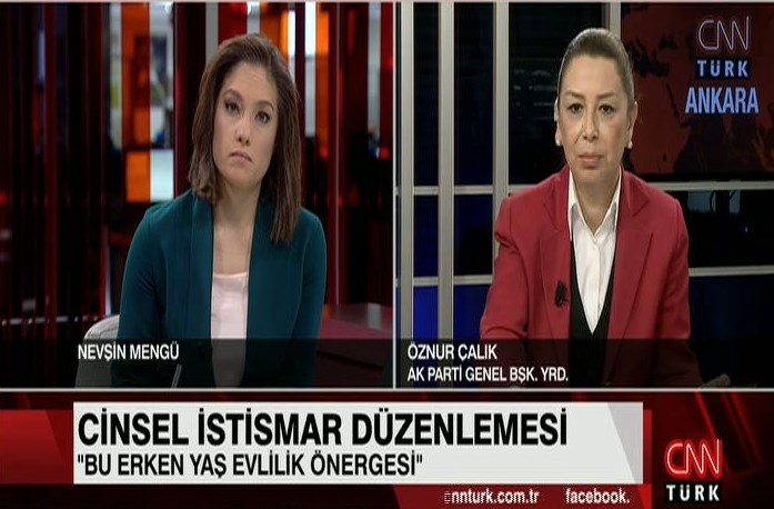 CNN Türk ana haber bülteninde cinsel istismar önergesi tartışıldı. Canlı yayına bağlanan AK Parti Genel Başkan Yardımcısı Öznür Çalık, Nevşin Mengü’yü KJ konusunda uyardı.