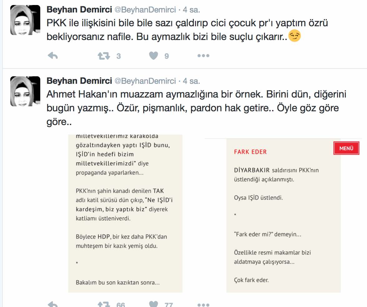 Ahmet Hakan’ın bugünkü yazısı aslında “şu yaramaz PKK da olmasa HDP’yi ne güzel ittireceğiz” kafa yapısının yansıması… Hatta PKK’ya kızıyorlar. “Sizin yüzünüzden HDP’yi savunamıyoruz” sitemi bu… Yani Doğan medyası tıpkı ABD, tıpkı Avrupa Birliği gibi, HDPKK’nın yanında…