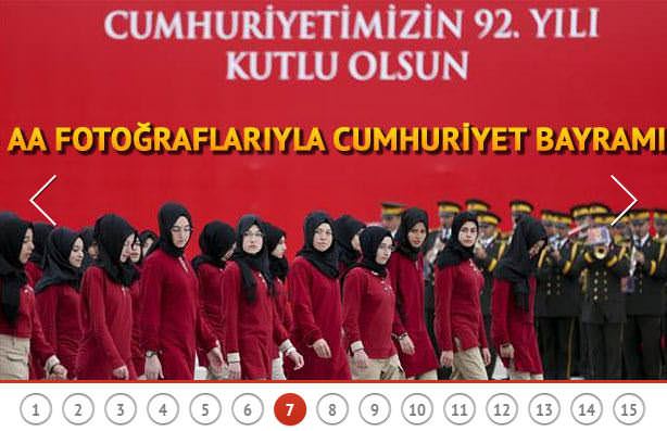 Hürriyet coşkuyla kutlanan ve sivilleşen 29 Ekim kutlamarında Osmanlı armasının yanı sıra başörtülü öğrencileri de hazmedemedi. Hürriyet, kutlamalar esnasında başörtüsüyle geçiş yapan öğrencileri manşetine taşıyarak 28 Şubat zihniyetini bir kez ortaya çıkardı…