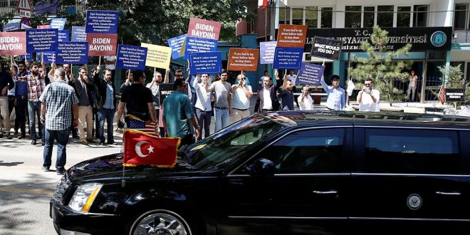 ABD Başkan Yardımcısı Joe Biden, Başbakan Binali Yıldırım ile görüşmek üzere Çankaya Köşkü’ne giderken, bir grup protesto etti.