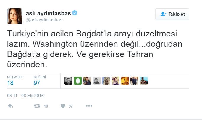 Türkiye’nin çıkarlarına karşı hangi cephe açılırsa hep orada. Bunun için FETÖ gazetesi Cumhuriyet’te yazar, FETÖ ile aynı frekansta yer alır, PKK ve HDP’yi destekler, FETÖ’nün adayı Meral Akşener’i gazlar, ABD Başkan Yardımcısı Joe Biden ile yanak yanağa poz verir. Ama hiç Türkiye’nin yanında ve safında durmaz. Aslı Aydıntaşbaş. Şimdi de Türkiye’ye İran aklı veriyor. Bu kez de karşımıza İrancı olarak çıkıyor.