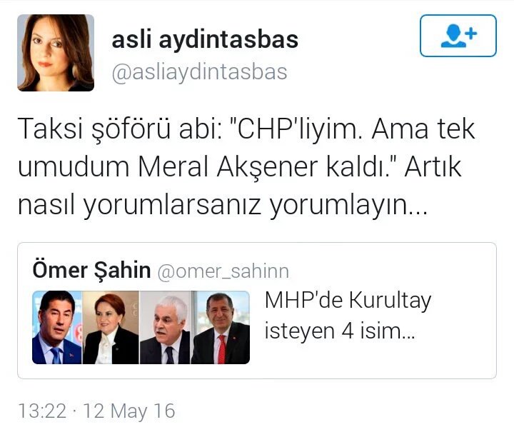 Fotoğraf artık net. FETÖ de, PKK da, HDP de, ABD de Meral Akşener diyor. İşte Aslı Aydıntaşbaş. ABD Başkan Yardımcısı Joe Biden’ın gülü namı diğer. FETÖ gazetesi Cumhuriyet’in yazarı. PKK’nın destekçisi… Şimdi de Meral Akşener’ci oldu.