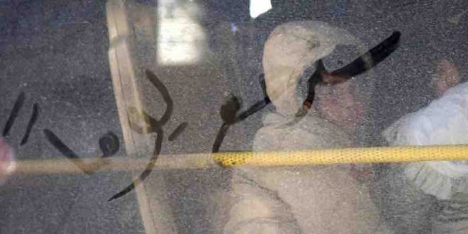 Tahliye edilen Suriyeliler’in bindiği otobüslerin birinin penceresine Arapça olarak “Bir gün geri döneceğiz” yazısı yazıldı.