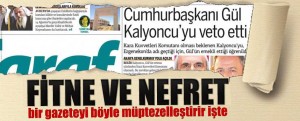 Yalanları ortaya çıkınca da şimdi başka bir aşağılık fitne operasyonu ile “Cumhurbaşkanı Gül veto etti, Başbakan Erdoğan istedi” gibi bir algıya hizmet edercesine Gül’e güzellemelere başladılar. İşte bugünkü Taraf gazetesi.