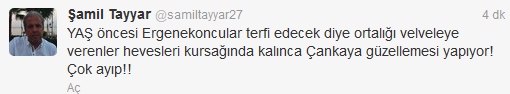 “YAŞ öncesi Ergenekoncular terfi edecek diye ortalığı velveleye verenler hevesleri kursağında kalınca Çankaya güzellemesi yapıyor! Çok ayıp!!”