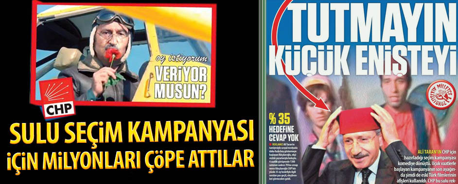 7 HAZİRAN seçimleri için Ali Taran ile anlaşan CHP’nin seçim kampanyası ilginç bir hal aldı. Kılıçdaroğlu’nun uçuk vaatlerinin ardından başlatılan alkış kampanyasını Retro seçim afişleri takip etti. CHP’li seçmenler tarafından bile itibar görmeyen ciddiyetten uzak reklam kampanyası için milyonlarca dolar harcandı. Cem Uzan’ın espri konusu olan vaatlerinin mimarı Ali Taran’ın, CHP’nin seçim kampanyasını alması parti içerisinde rahatsızlık yaratmıştı.
