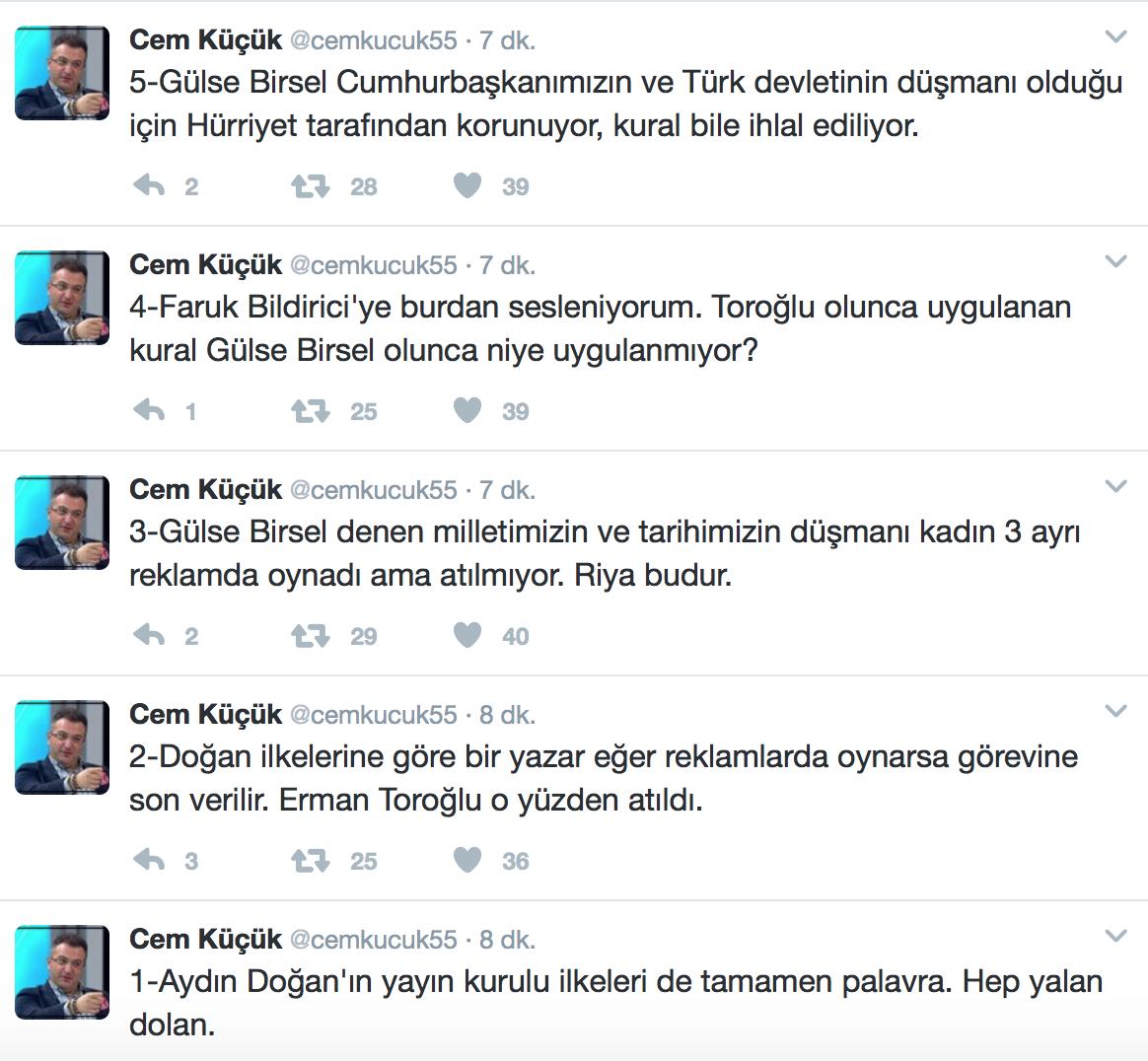 7-Gülse Birsel 2013 ortalarına kadar Sabah’ta yazan ve hükümete yalakalık yapan biriydi.Atatürkçü falan da değildir. Gerçek budur.