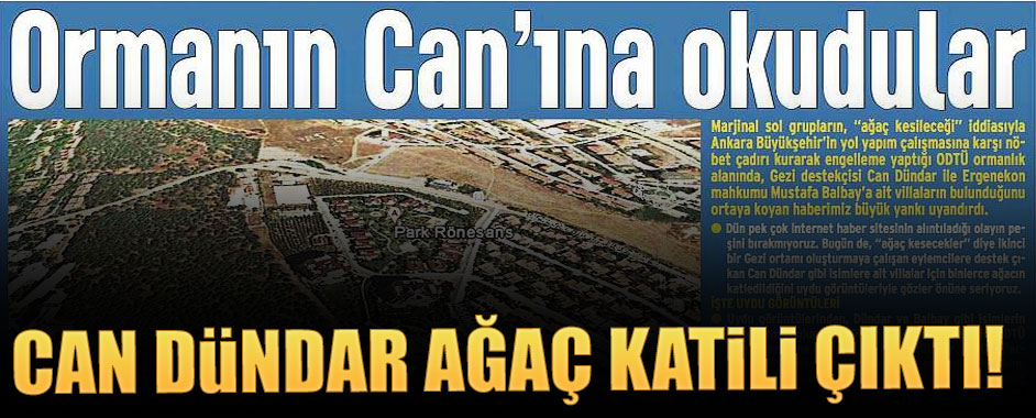 Akit’in, Başkent’teki marjinal sol grupların “ağaç kesileceği” iddiasıyla Ankara Büyükşehir’in yol yapım çalışmasına karşı nöbet çadıra kurarak kalkan olduğu ODTÜ ormanlık alanında Gezi destekçisi Can Dündar ile Ergenekon mahkumu Mustafa Balbay’a ait villaların bulunduğunu ortaya koyan haberi büyük yankı uyandırdı.