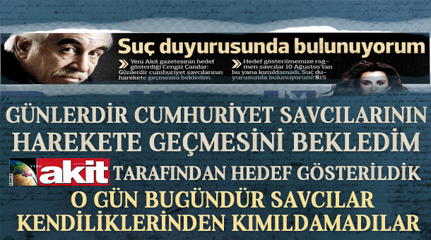 Günlerdir cumhuriyet savcılarının harekete geçmesini bekledim. 10 Ağustos tarihli Yeni Akit’te ‘Şemdin Sakık’tan bombalar’ manşeti ve fotoğraflarımızla hedef gösterildik. O gün bugündür cumhuriyet savcıları kendiliklerinden kımıldamadılar.