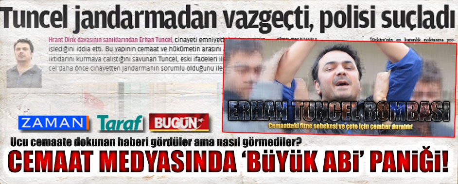 Erhan Tuncel’in Hrant Dink suikastinden cemaate yakın iki emniyet bürokratını suçlamasına cemaatin gazetelerinin tavrı dikkat çekiciydi.