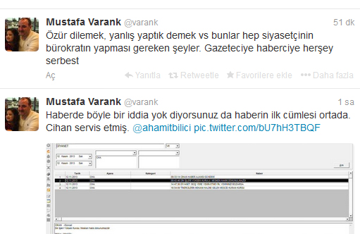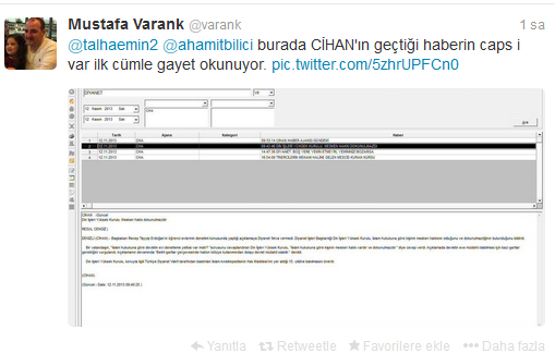 Ancak Cihan’ın yalan söylediği Başbakan Erdoğan’ın danışmanlarından Mustafa Varank’ın Twitter’da açıkladığı belgelerle ortaya çıktı. Cihan Haber Ajansı resmen “Erdoğan’a Diyanet fetva vermedi” diye haber servis edip, bu haberi kullanan internet sitelerini suçladı.