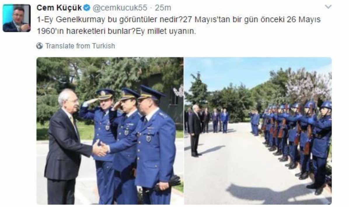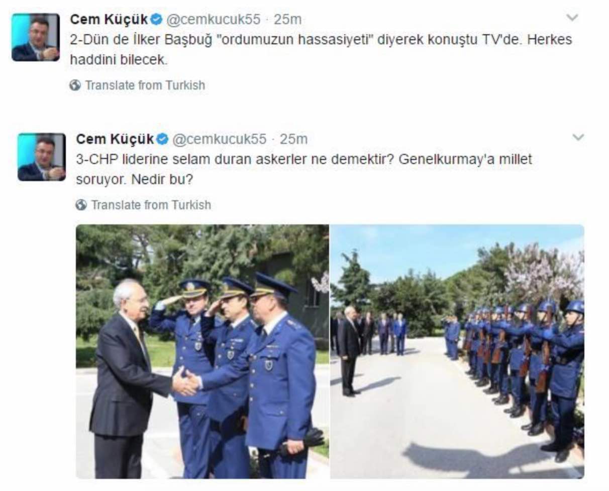 Büyük skandal! Balıkesir’de askeri üste törenle karşılanan Kemal Kılıçdaroğlu, seçim yasağını ihlal etti. Askeri üsse özel helikopteri ile iniş yapan Kemal Kılıçdaroğlu askeri törenle karşılandı. Tören mangasının sadece Cumhurbaşkanı, Başbakan, Meclis Başkanı ve amirleri dışında kimseyi karşılamayacağı askeri yönetmeliklerle kontrol altına alındığı biliniyor. Seçim yasağının ihlali anlamına gelen bu uygulama sosyal medyada büyük tepki topladı. Gazeteci Cem Küçük ise hem Kılıçdaroğlu’na hem de üs komutanına sert tepki gösterdi. Görüntüler ilk kez A Haber ekranlarında yayınlandı.