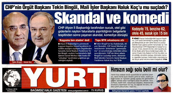 CHP eski Parti Meclisi üyesi ve eski Kahramanmaraş Milletvekili Durdu Özpolat’ın sahibi olduğu Yurt gazetesi, CHP Afyon il teşkilatındaki sahte fatura skandalı sonrasında parti içindeki suçlamaları sayfalarına taşıdı.