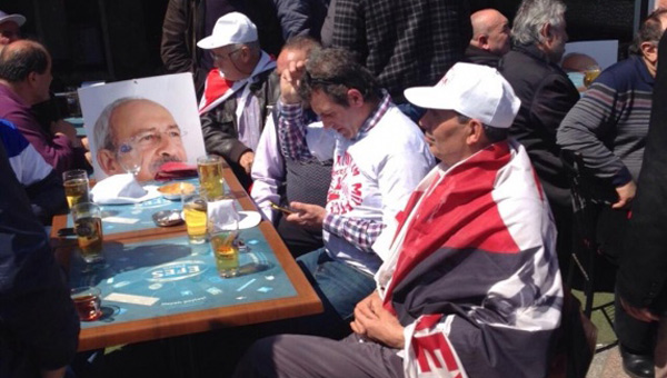 CHP Genel Başkanı Kemal Kılıçdaroğlu’nun Kartal mitingine katılan CHP’liler, mitingin başlamasını içki masası kurarak beklediler. Kılıçdaroğlu’nun da içki masalarında çıkan fotoğrafları tepki toplamıştı.