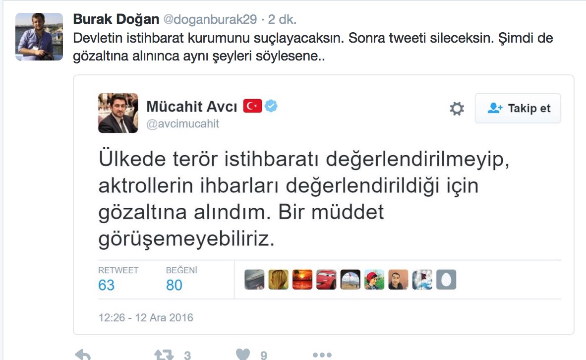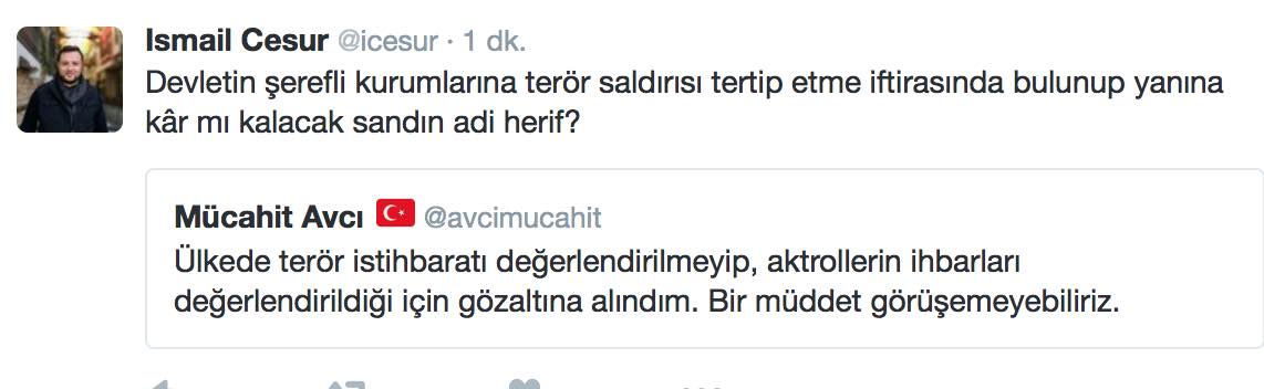 CHP’nin sosyal medya direktörü, CHP’deki FETÖ’cü trolbaşı Mücahit Avcı, PKK terör örgütünün Beşiktaş’taki hain saldırısından sonra devletin istihbarat teşkilatı MİT’i hedef almıştı. Avcı da teröre hizmet ettiği için gözaltına alındı.