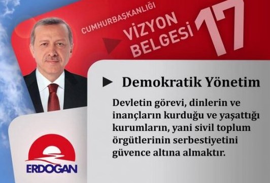 Dini istismar eden örgütlerin, devlet içinde yapılanmasına, paralel yapı kurmasına, devletin gücünü kullanmasına elbette izin verilemez. Demokratik devlet bunun güvencesidir. Devlet din ilişkisini belirleyen unsur sivilliktir. Toplum kendi dini yaşamını kendisi gerçekleştirmelidir. Hoşgörü birlikte yaşama ortak mirasımızın demokrasi ekseninde güçlendirmesini güçlendireceğiz. Ülkemiz için değil bölgemiz ve dünya için büyük bir örnek ortaya koymuş olacağız.