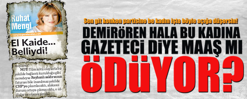 Bugün de Ruhat Mengi Vatan’daki köşesinde “El Kaide… Belliydi!” diye yazıp, CHP’yi kurtarma telaşına düşmüş.