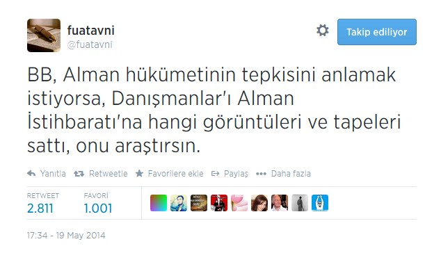 “Fuatavni” isimli paralel piç 19 Mayıs 2014 tarihli bir twitinde ne demiş:
