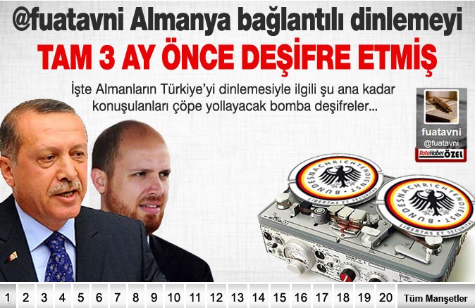 Bakın Gülen örgütünün iftira ve yalan saçan tetikçisi Rotahaber sitesi, paralel ihanet çetesiyle girdiği suç ortaklığında “embesil” gibi nasıl örgütü yakan manşet atmış. Şu manşet resmen Türkiye’yi Almanya adına Gülen örgütünün dinlediğinin itirafı: