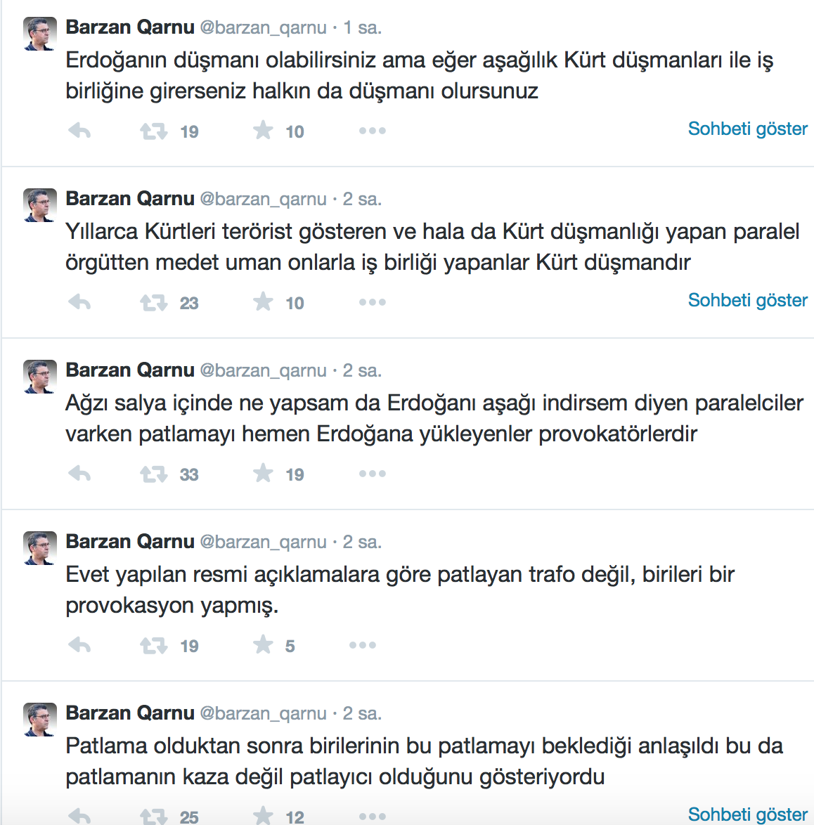 Sosyal medyada bölgeden bir hesabın şu paylaşımları provokasyonun içinde bir “üst akıl”, taşeronları olarak da HDP, Fetullahçı terör örgütü ve Doğan medyası olduğunu gözler önüne seriyor.