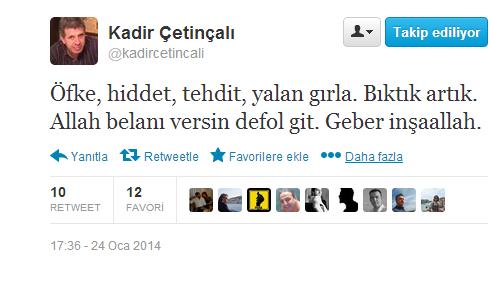 Çetinçalı, “Öfke, hiddet, tehdit yalan gırla. Bıktık artık. Defol git. Allah belanı versin. Geber inşallah” diye yazmıştı.