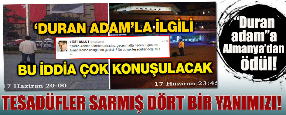 “Duran adam”a Almanya’dan ödül gelmesi Yiğit Bulut’un Gezi olayları sırasında ortaya attığı iddiaları akla getirdi.