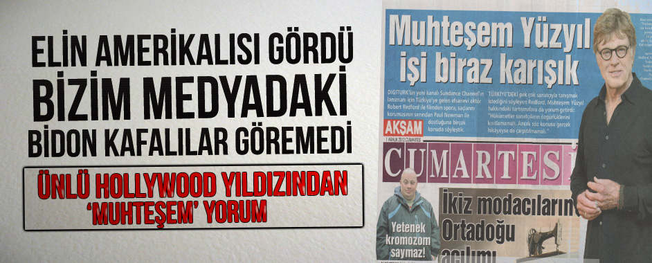 Akşam’ın Cumartesi ekininin sürmanşetinde yer alan röportajında Redford’un Muhteşem Yüzyıl dizisiyle ilgili sözleri dikkat çekiyor.