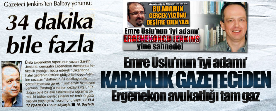 “Ergenekon örgütü karşıtı” gibi kendini gösteren Emre Uslu’nun “iyi adam” dediği “Ergenekon avukatı” karanlık İngiliz gazeteci Jenkins, “Siz Ergenekon denilen bir terör örgütünün varlığını kabul etmiyor musunuz?” sorusuna, “Etmiyorum. Yani mahkemenin tanımladığı gibi bir örgütün varlığını kabul etmiyorum. Ergenekon önceden hazırlanmış bir plandı.” dedi.