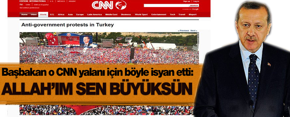 Başbakan Erdoğan, Ankara Rixos Otel’de düzenlenen Yurtdışı Vatandaşlar Danışma Kurulu toplantısında CNN International’in çirkin yalanına da değindi, “Allah’ım sen büyüksün” diyerek yalana isyan etti.