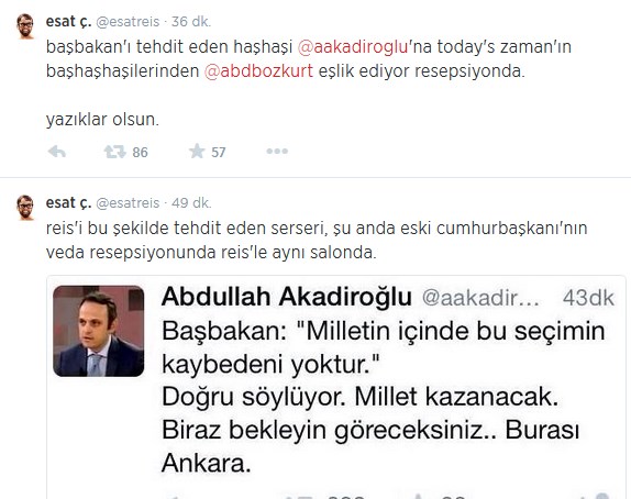 Seçim günü “Bakın neler olacak, burası Ankara hiçbir yere benzemez” diyerek Erdoğan’ı tehdit eden Gülen örgütü militanı Samanyolu TV Ankara Temmsilcisi Abdullah Abdülkadiroğlu da bu akşam Cumhurbaşkanı Abdullah Gül’ün Çankaya Köşkü’ndeki veda resepsiyonuna davet edilenler arasındaydı.