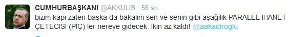 kimsin sen lan cumhurbaşkanını tehdit ediyorsun eziğin önde gideni. sayesinde aç karnınız doydu lan nankörler. Ankara yı senin gibi bir dağlıdan mı öğrenecek Erdoğan. sen köyünden Ankara ya göç ederken o geri dönüyordu.