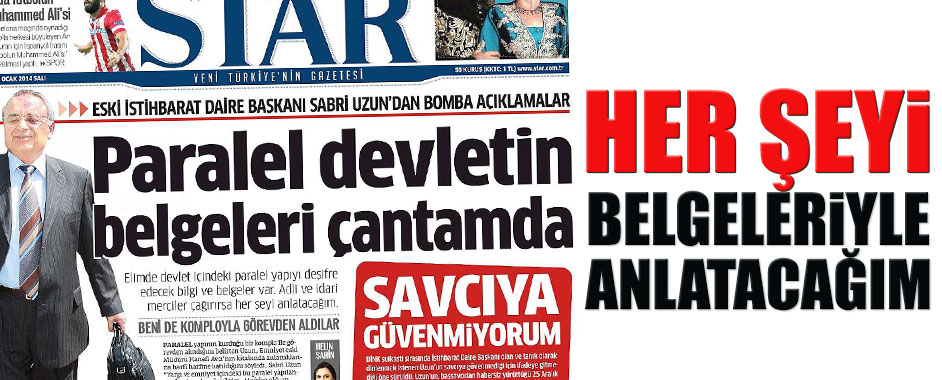 Emniyet İstihbarat Dairesi eski Başkanı Sabri Uzun, devlet içindeki paralel yapılanmanın mağduru olduğunu dile getirdi ve çağırmaları halinde adli mercilere “devlet içindeki devlete” dair belgeleri sunacağını söyledi. Sabri Uzun, Paralel devleti anlattığı kitabı Haliç’te Yaşayan Simonlar: Dün Devlet Bugün Cemaat, yüzünden mahkum olan eski emniyet Müdürü Hanefi Avcı’nın yazdıklarına ‘harfiyen katıldığını’ söyledi.