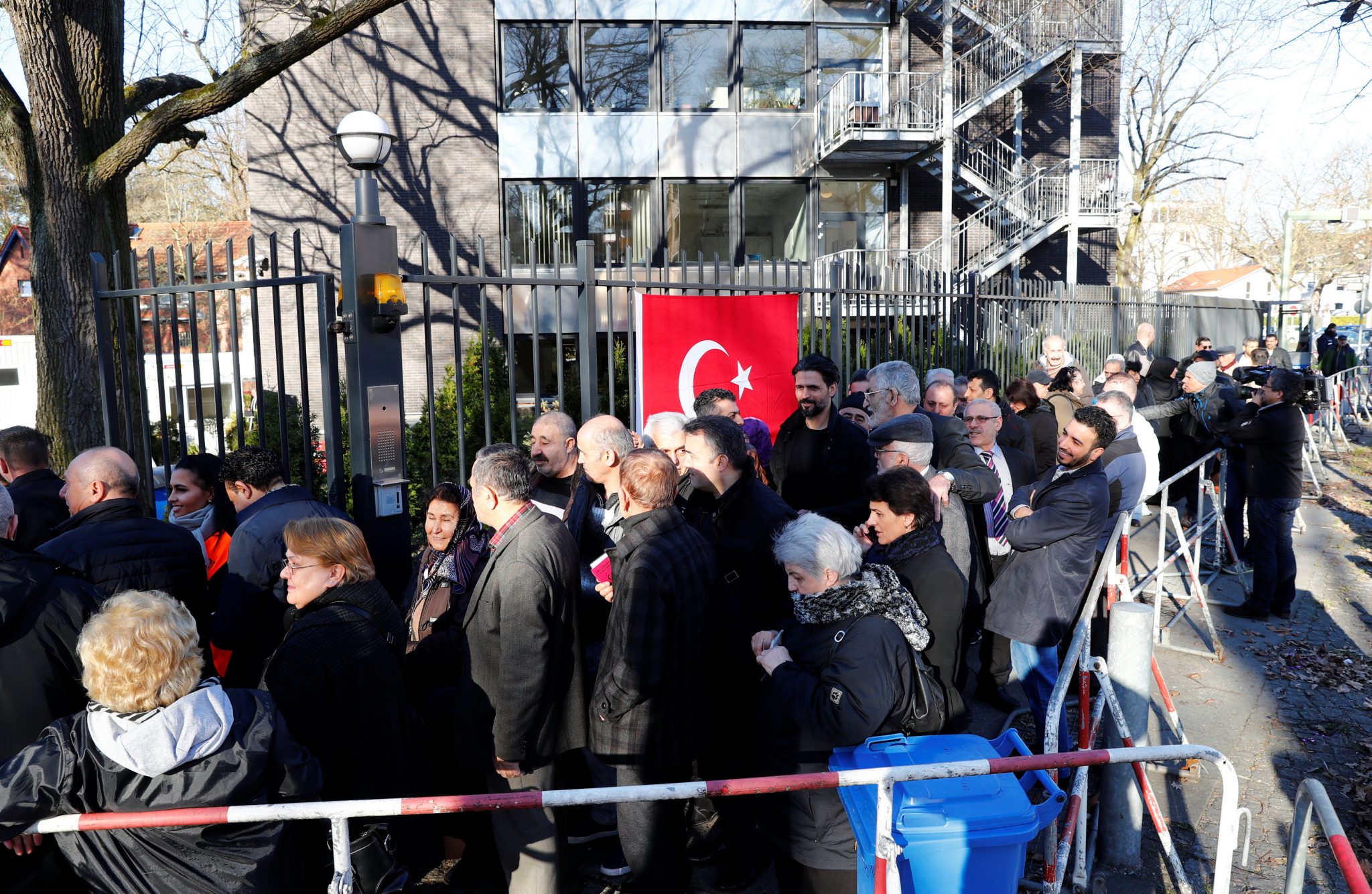 Köln Büyükelçiliği’nde oylarını kullanan Türkler, uzun kuyruklar oluşturdu. Almanya’da 1 milyon 400 bin seçmen bulunuyor.