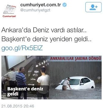 Cumhuriyet gazetesi, Ankara’da yaşanan sel felaketini Deniz Gezmiş’in idamıyla bağdaştırmaya çalıştı.