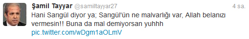 Gaziantep Milletvekili Şamil Tayyar da Sarıgül’e Twitter’dan böyle tepki gösterdi.