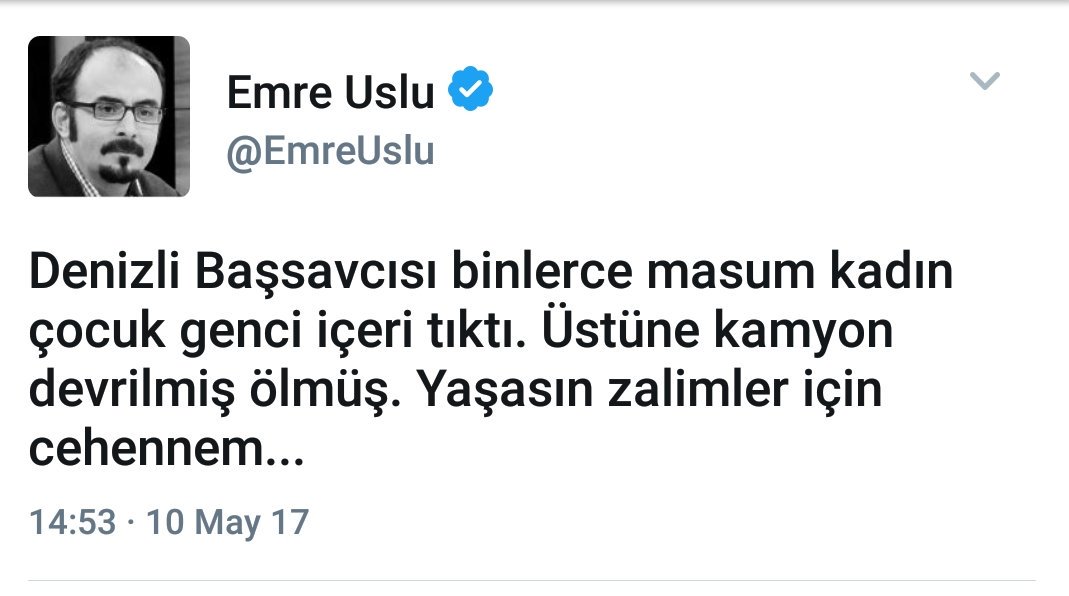 İki gün önce FETÖ’cü firari Tuncay Opçin’in attığı “Hizmet, ‘önümüzde ateşten bir deniz var, atlarınızı ateşe sürün’ dese, tartışmadan yapmamız gereken bir dönem.” şeklindeki tweet sonrası bugün suikast gibi bir kaza sonrası yaşamını yitiren Denizli Cumhuriyet Başsavcısı Mustafa Alper’in FETÖ tarafından öldürülmüş olabileceği ihtimali güçlendi. FETÖ’nün inlerine giren etkili savcılardan biri olan Alper’in kazası sonrası kaçak FETÖ’cü terörist Emre Uslu’nun attığı şu tweet, bir anlamda FETÖ’nün suikasti üstlenmesi gibi…